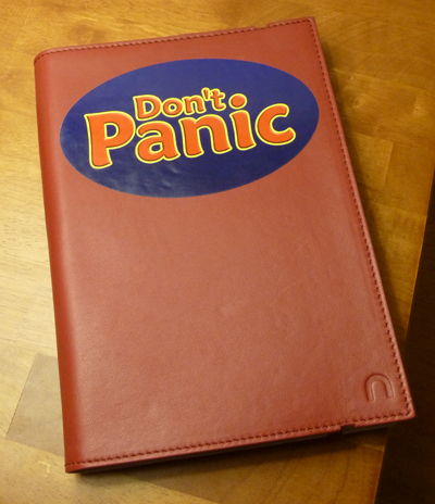 Awhile ago I posted about designing a bumper sticker to use to make myself a “Don’t Panic” nook cover. (