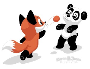 Lately, I’ve been playing with a lineless or limited lines style. Unless it’s a really simple drawing (like that fox and panda up above) these typically take the longest because they’re the closest I generally come to realistic details and lighting. This is my favorite style to work in if I have the time to devote to it.