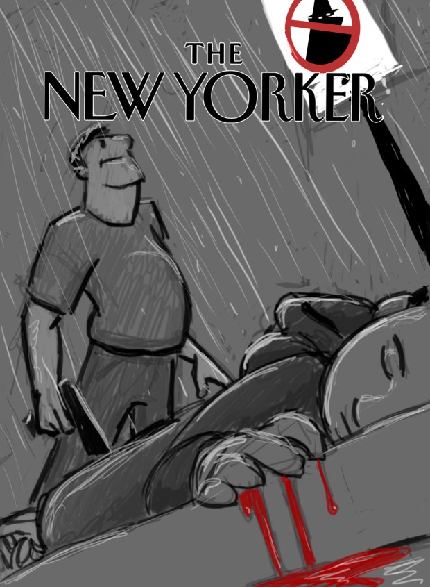 This is my entry for this week’s Blown Cover design competition. The contest asks for a sketched design idea for a New Yorker cover using that week’s theme. The theme was Trayvon Martin. Mine didn’t win, but I thought I’d share it anyway.