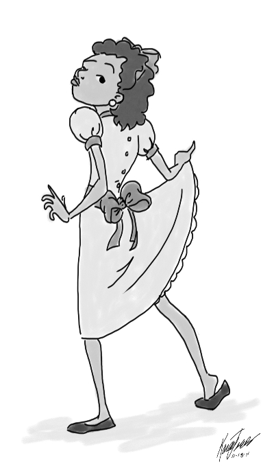 So far, we’ve had some characters that were deliberately ambiguous on gender, presenting as more-or-less androgenous. Today’s character is a little different. They’re wearing traditionally female clothing, but their hair and facial features are drawn using visual cues that typically read as masculine. However, I tried to make it ambiguous enough that it still wasn’t entirely clearcut. Personally, I’d hesitate to guess how this child identifies. I’d have to ask for their pronouns.