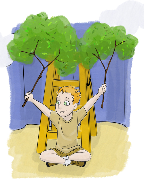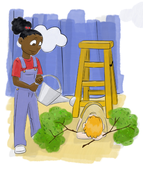 Here’s panel 1 and an updated panel 4 for this spread. This is going to be an illustration sample for October’s local SCBWI conference. Two more panels to go.