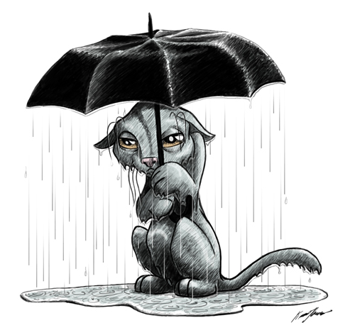 A few days ago I was in the mood to take requests. Elaethyra asked for a mouse sitting on a mushroom using another mushroom as an umbrella. Well, the rainy April weather’s been particularly inspiring for that sort of piece, so here you go.
