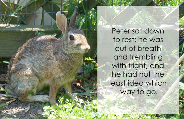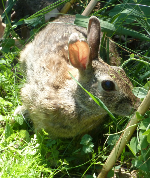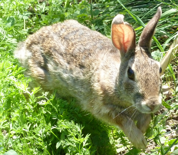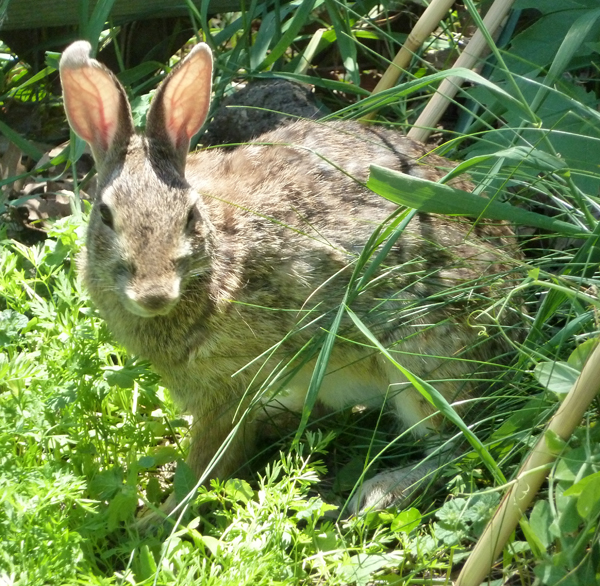 So, today I went out to my garden to see if there were any peas to pick. Someone had left the gate open, and there was a bunny inside. So, I closed the gate and went back in for my camera. These are the pictures I took before I let the bunny out again. I think I need to weed the garden.